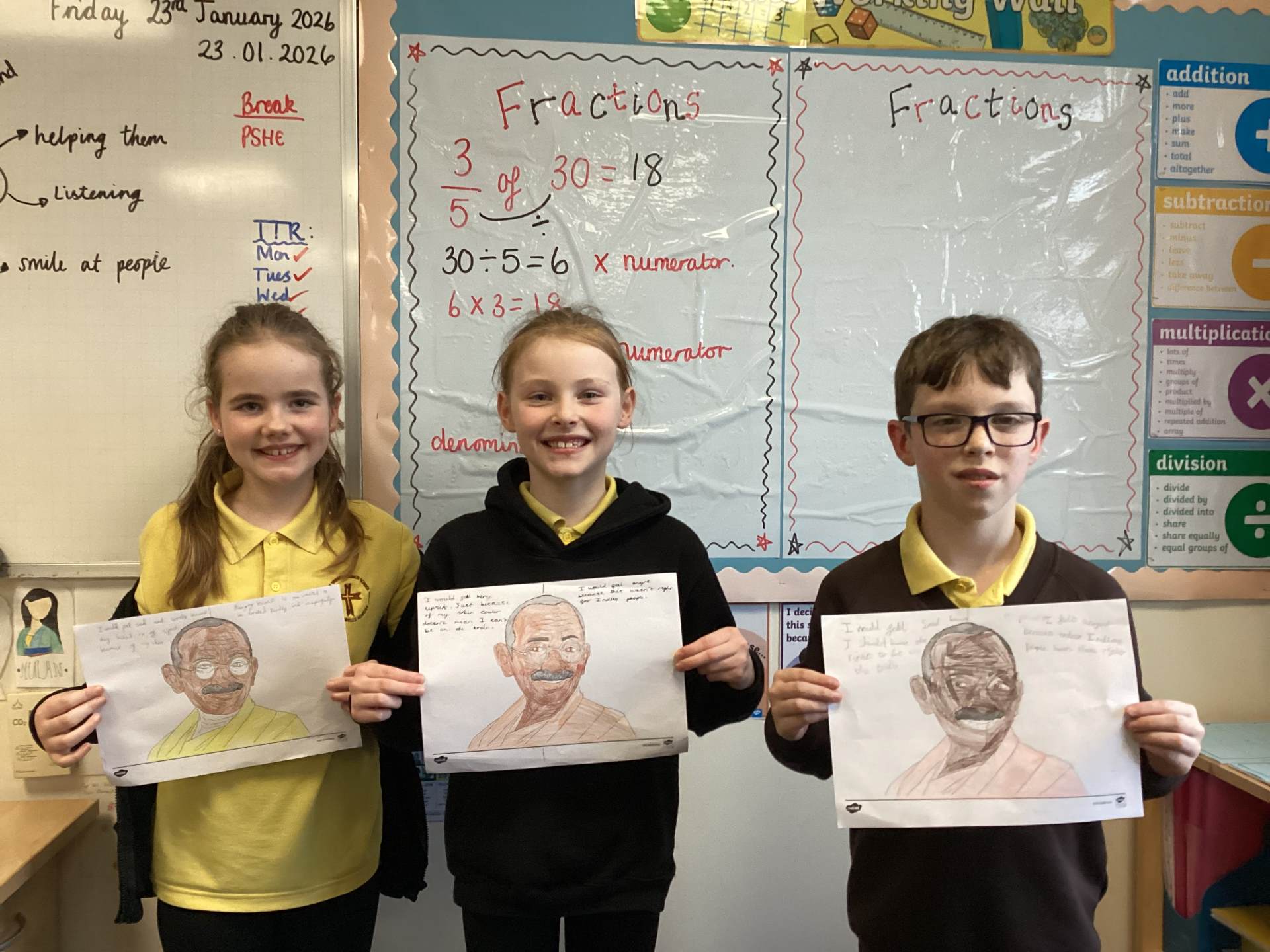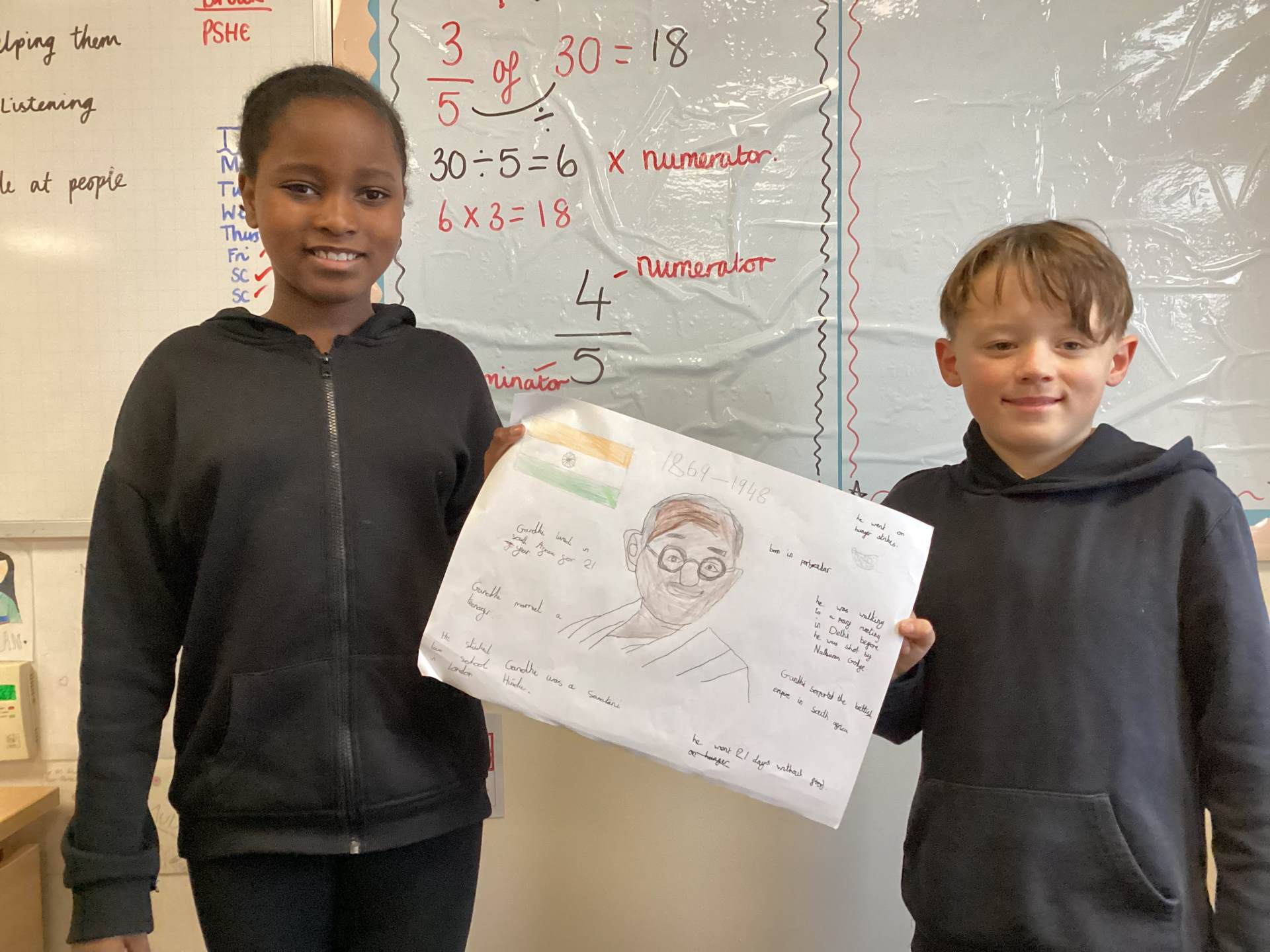 Today, Year 4 have been learning about Gandhi and how important he was. We found out lots of facts, including the fact that he was given the name Mahatma meaning great soul.