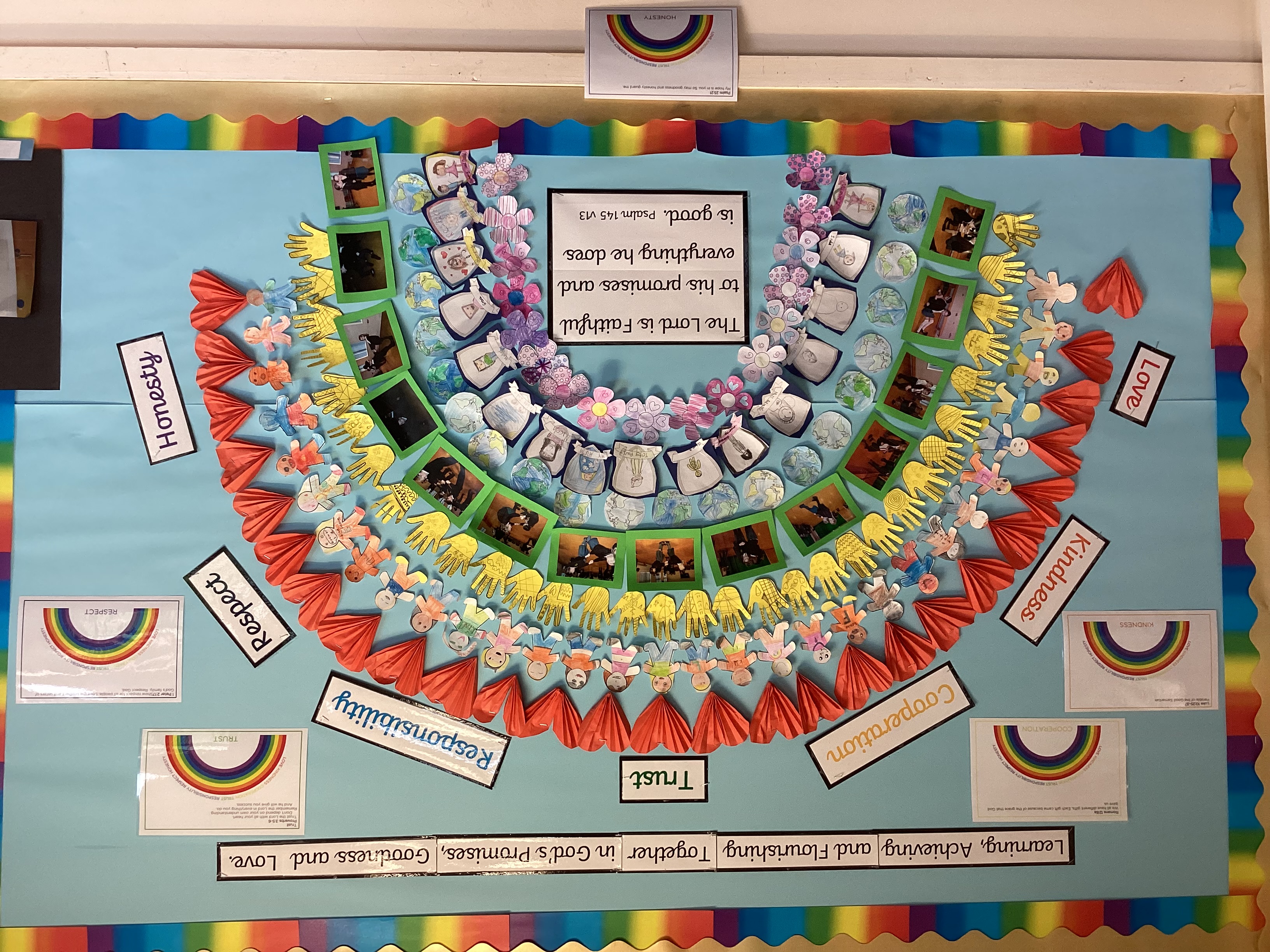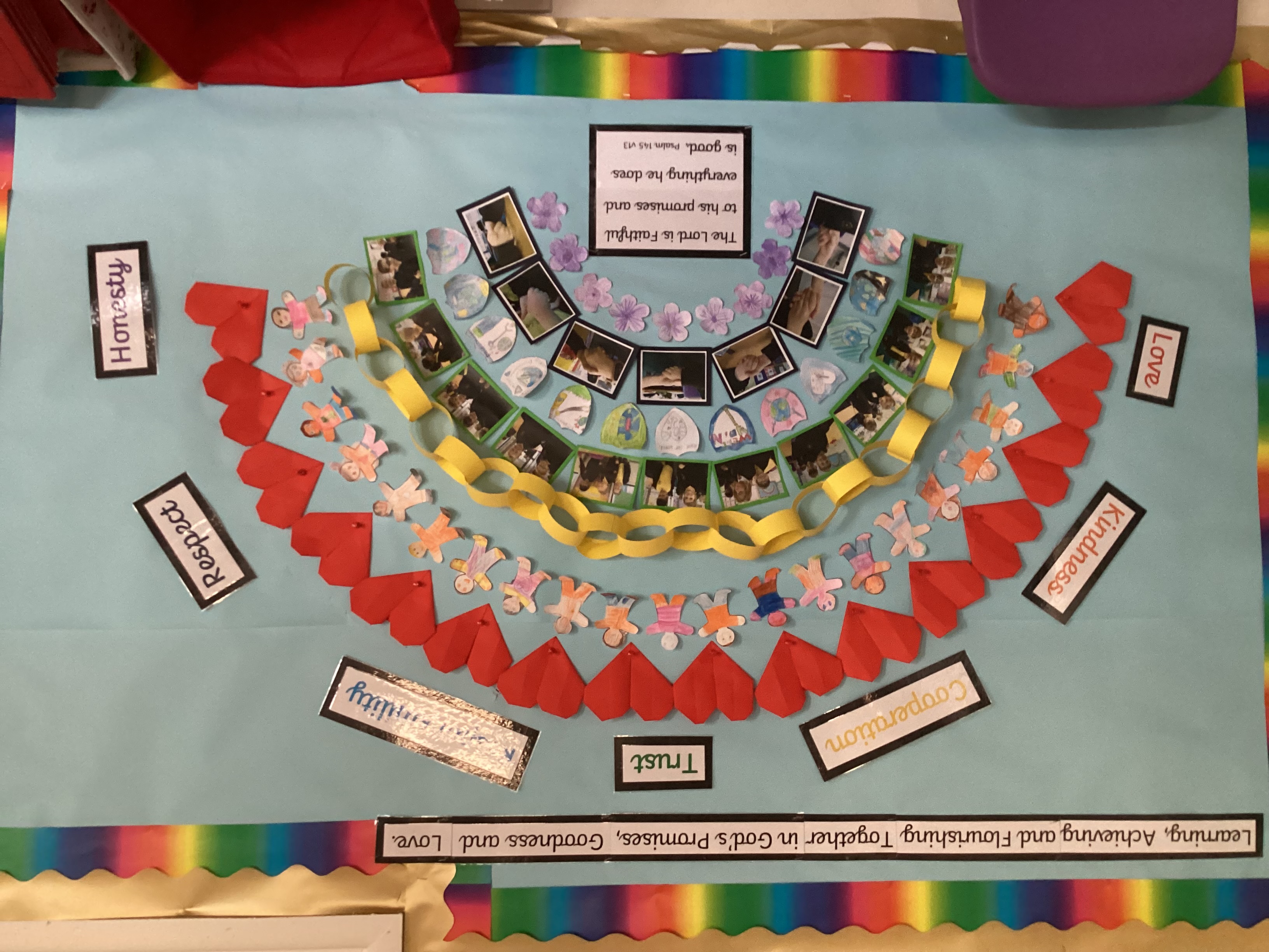 Each class creates their own rainbow value display during Community Time: