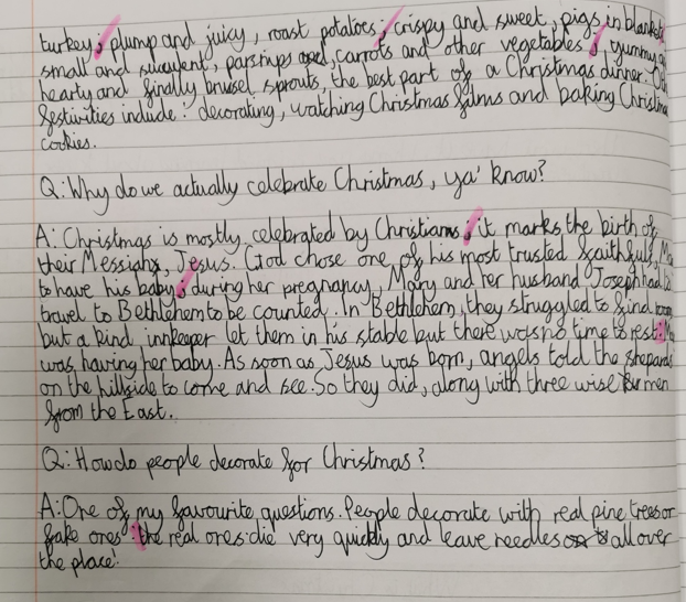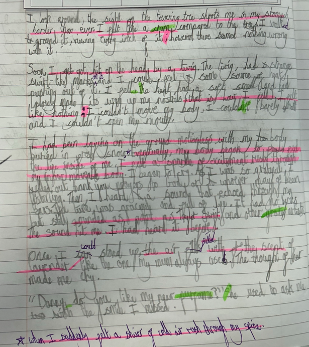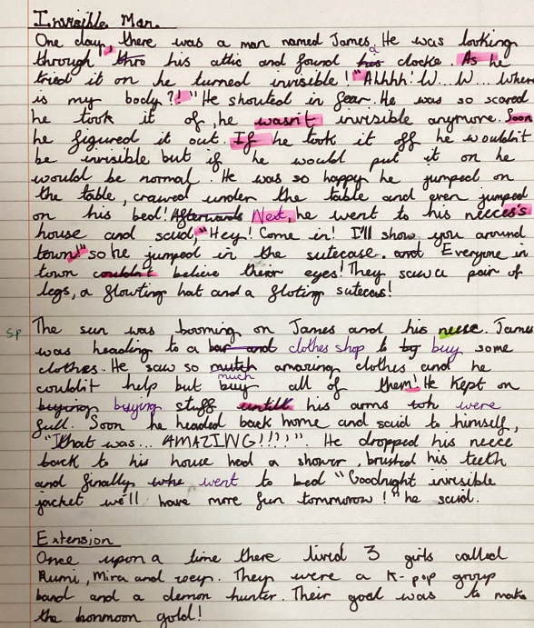 Ava: for paying attention to her personal targets (a range of subordination, prepositions, speech punctuation and apostrophe of possessions) in her short burst narrative.