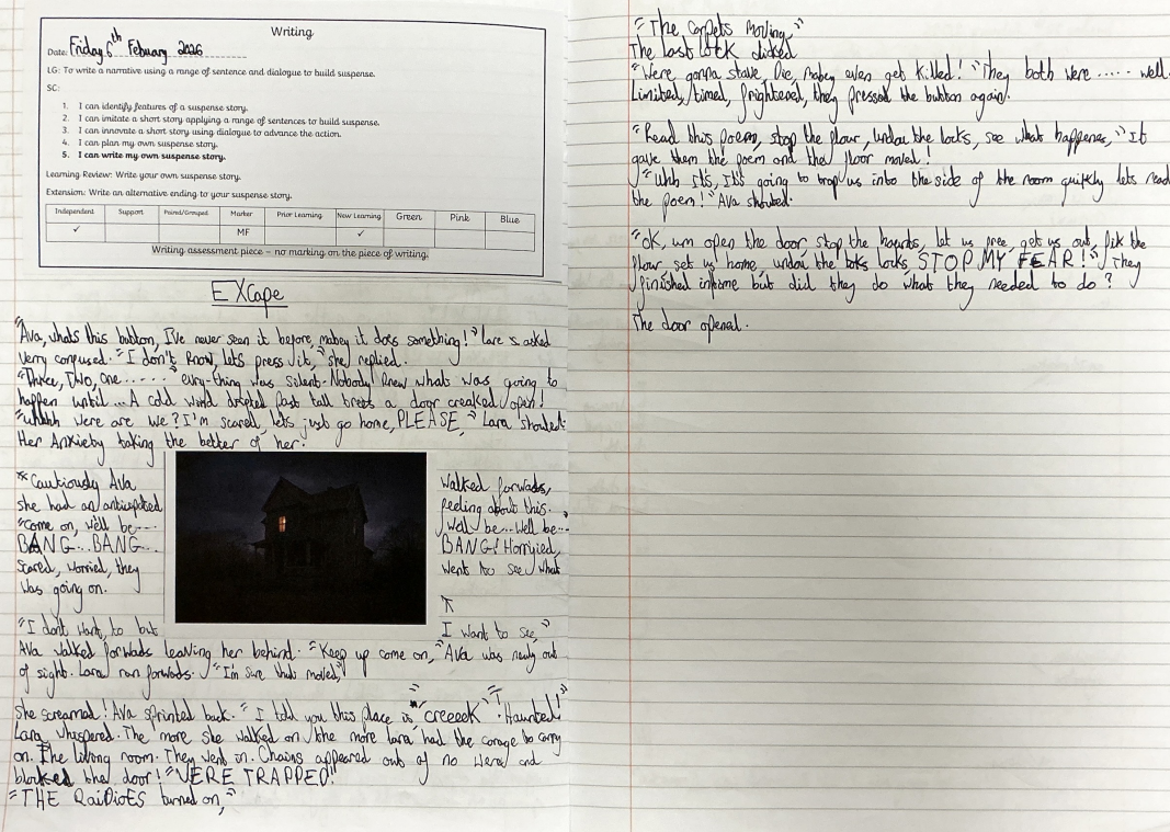 Class 11: Jack, Kayla, Amelia, Raayith for their efforts in their final suspense writing.